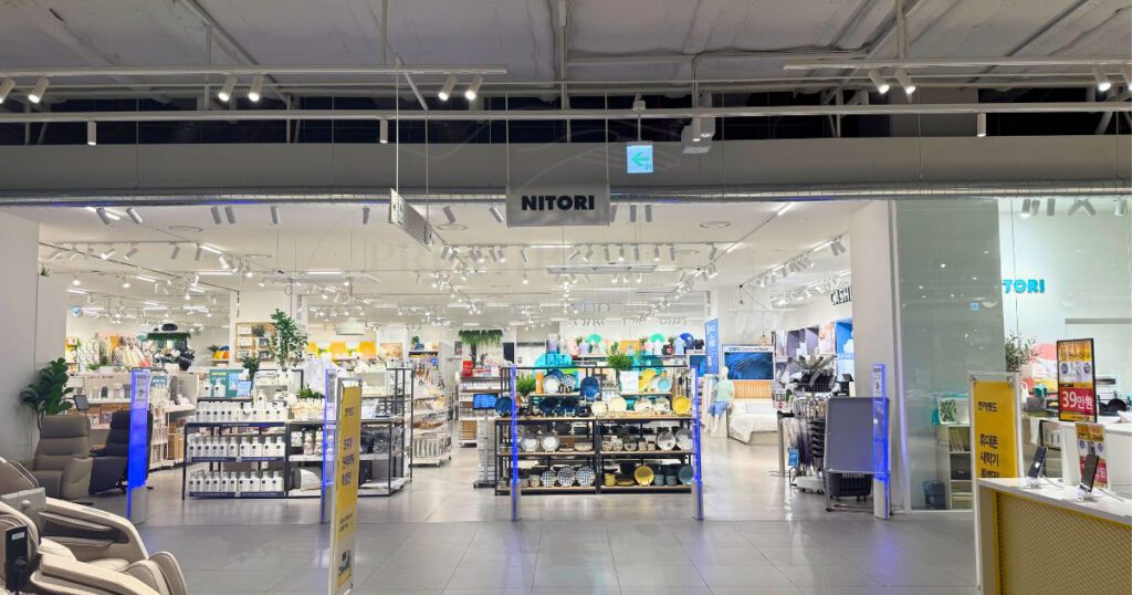 4階の子供服売り場やキッズカフェ、雑貨店の間で意外と存在感を放っているのがおなじみの「ニトリ」。韓国進出にあたり、ここ清州でも初の出店です。