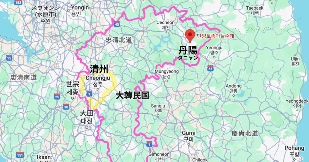 韓国の「道(日本の県にあたる)」のひとつ、忠清北道に属する地域。距離は少し離れていますが、実は清州(チョンジュ)と同じ忠清北道エリアなんです。
