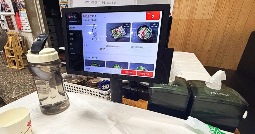 お店自体は古き良きノスタルジックコリアな雰囲気ですが、注文は卓上のタブレットで行う最新スタイル。韓国語がわからなくても写真を見ながら注文できるので、韓国語が不安な方でも安心して注文できそう。