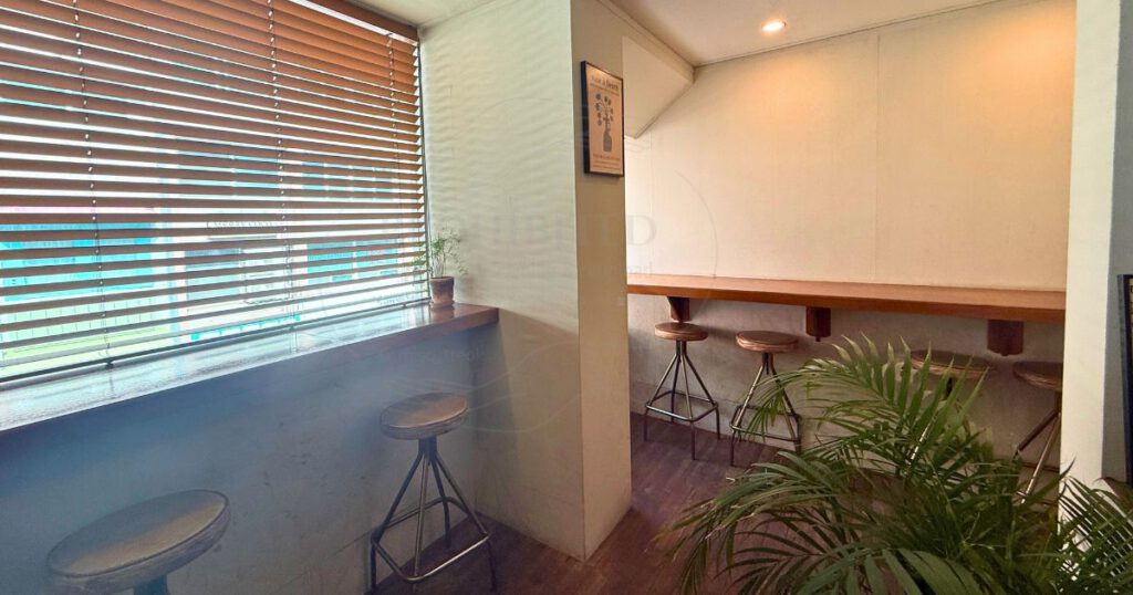 広さはそれほど大きくないものの、4人掛けのテーブル席に加え、窓際にはひとりでも使いやすいカウンター席が用意されています。ゆっくりとくつろぎながら、タルトとコーヒーを楽しめる空間です。