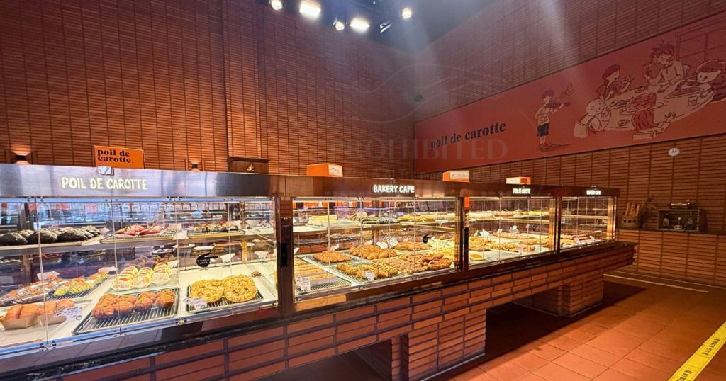 店内に入ると、まず右手にパンのショーケースが並びます。デニッシュ系から惣菜パン、サンドイッチ、焼き菓子まで種類豊富で、選ぶ時間も楽しいひととき。ケーキはレジ付近、食パンはさらに奥の壁側にあり、カット済みと丸ごとタイプのどちらも選べます。